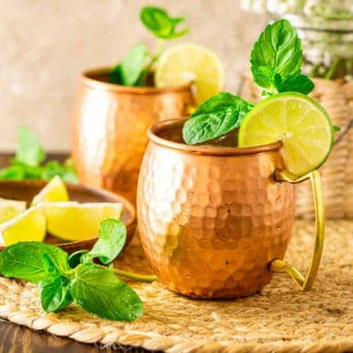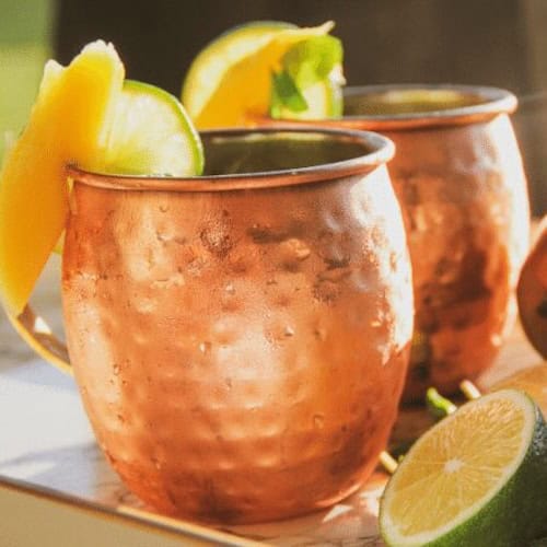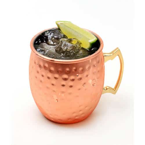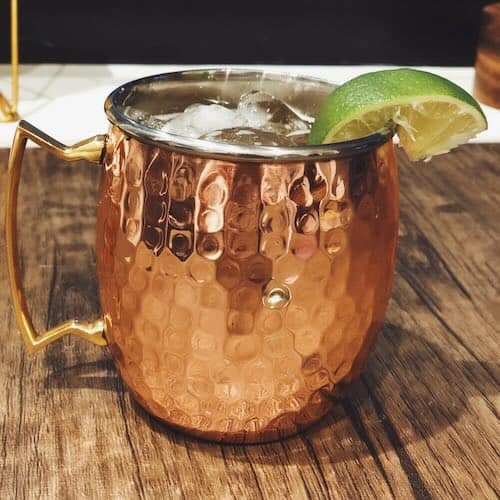 Place the lime juice in a copper mug and add ice. Add the vodka and top with ginger beer. Garnish with the lime wedge and mint.