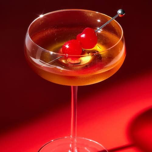 Stir all ingredients with ice. Strain into a chilled coupe. Garnish with a cherry.