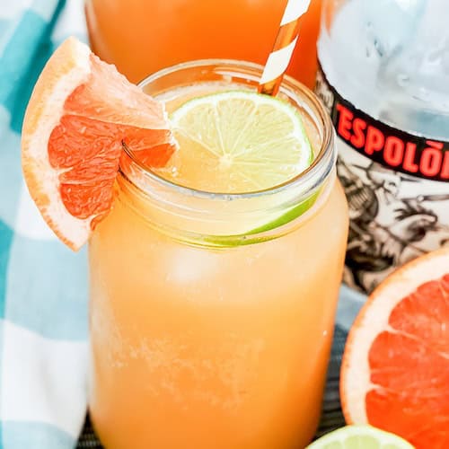 Add the tequila and grapefruit soda to a mason jar filled with ice. Add the lime juice, stir and garnish with the lime slice.