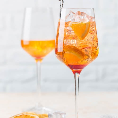 Place the cocktail ingredients in a rocks glass filled with ice, stir until combined, and garnish with a twist of orange.