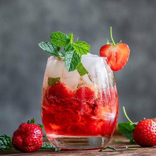 In a sturdy glass or shaker, muddle the strawberries and mint together with the lemon juice and simple syrup. Smash it well—this isn’t a delicate process. Add bourbon (or vodka) and fill the shaker with ice. Shake vigorously, like you mean it. Strain into a glass filled with crushed ice. Top with a splash of club soda if you want a slightly longer drink. Garnish with a sprig of mint and a strawberry on the rim.