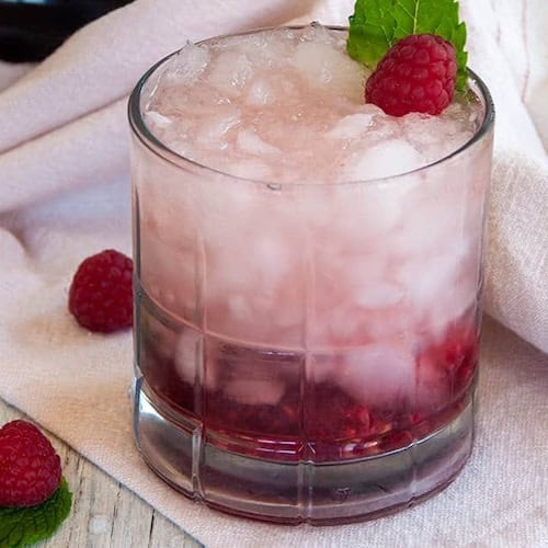 Place the gin and lemon juice in a cocktail shaker with no ice, shake until combined, and strain over ice in a rocks glass. Muddle the raspberries and simple syrup with a cocktail muddler and pour the mixture over the top of the drink.