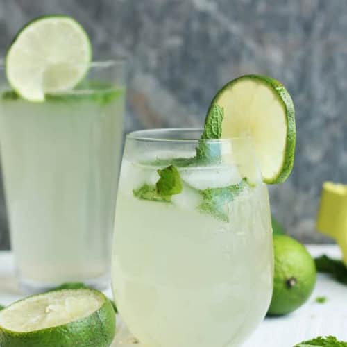 In a glass, muddle fresh mint leaves with lime juice and simple syrup. Fill the glass with ice, then top with soda water. Stir gently, and garnish with a mint sprig and lime wedge.
