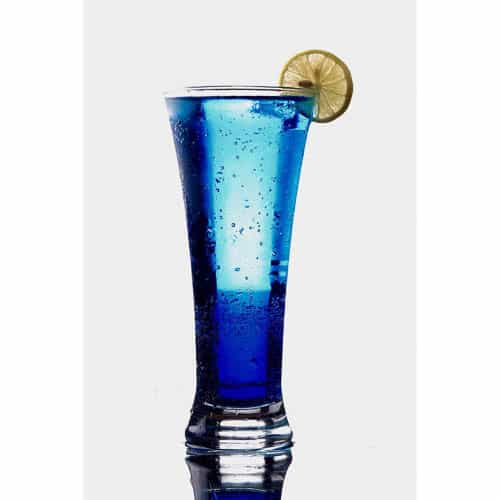 Place the vodka and blue curacao in a shaker filled with ice and shake it. Place ice in a mason jar and strain. Top with the lemonade and a splash of lime juice. Garnish with a slice of lemon and maraschino cherry.