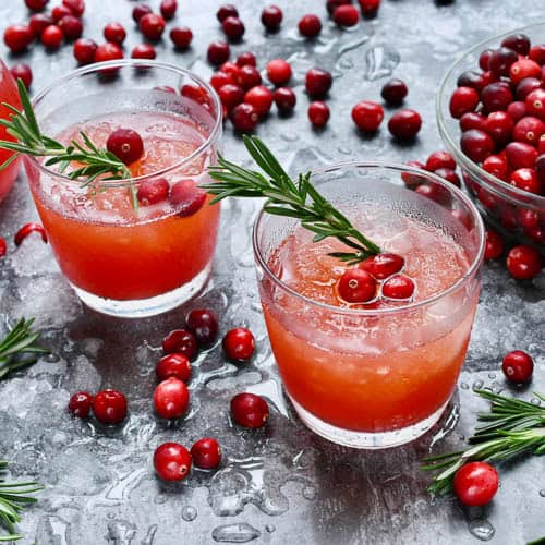 Shake vodka, lemon juice, lime juice, orgeat, and cranberry juice in a cocktail shaker with ice. Strain into a tall glass filled with crushed ice. Top with club soda and garnish with cranberries and a sprig of rosemary.