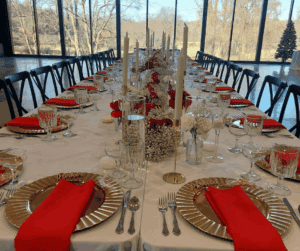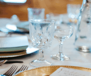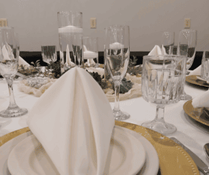Are you planning a formal champagne toast? Don’t forget to include a champagne flute for guests to toast with you. On the other hand, don’t add more to the tables than what you need. This creates clutter and makes people feel crowded.
